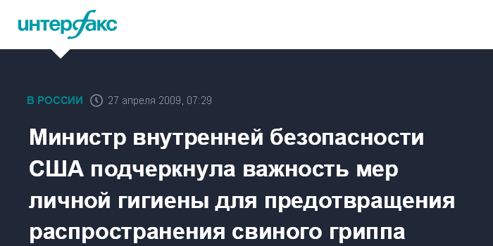 Министр внутренней безопасности США подчеркнула важность мер личной гигиены для предотвращения распространения свиного гриппа