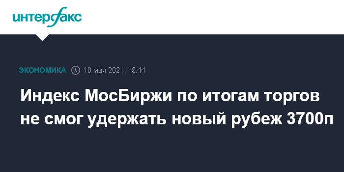 Москва. 10 мая. INTERFAX.RU - Рост рынка акций РФ к вечеру сменился боковой стабилизацией на фоне нисходящей коррекции фондовой Европы, США и нефти (Brent просела в район $68 за баррель с утренних $69,2), индекс МосБиржи в течение торгов протестировал новый рубеж 3700 пунктов, но удержать его не смог; в падении лидировали расписки Ozon, обновили максимумы расписки TCS Group, акции Сбербанка и "Русала".