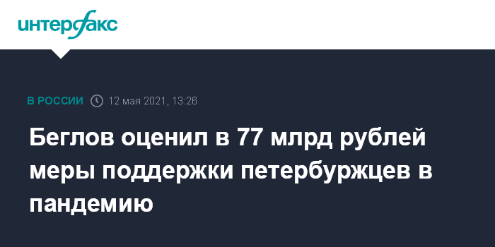 Москва. 12 мая. INTERFAX.RU - В 2020 году из бюджета Петербурга на внеплановую поддержку граждан в условиях пандемии было потрачено 77 млрд рублей, социальные расходы бюджета увеличились по сравнению с 2019 годом почти на треть, заявил губернатор Александр Беглов в городском ЗакСобрании.