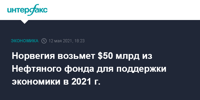 Москва. 12 мая. INTERFAX.RU - Правительство Норвегии намерено в этом году использовать на поддержку экономики рекордные 402,6 млрд крон ($49 млрд) из нефтяных доходов, которые обычно идут в Государственный пенсионный фонд страны (он же Нефтяной фонд), самый большой фонд национального благосостояния в мире.