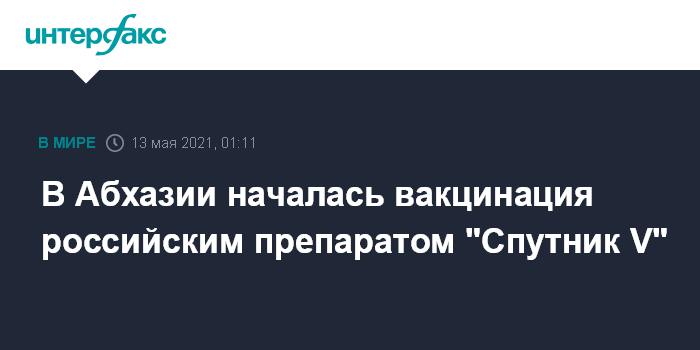 Москва. 13 мая. INTERFAX.RU - В среду в Абхазии началась вакцинация от коронавируса российским препаратом "Спутник V".
