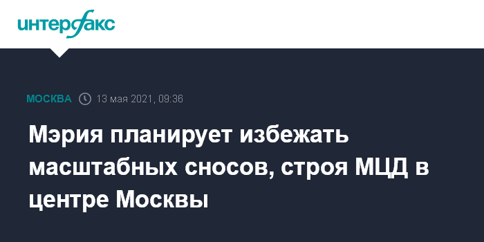 Москва. 13 мая. INTERFAX.RU - Проекты будущих маршрутов Московских центральных диаметров (МЦД) будут прокладываться таким образом, чтобы минимизировать снос существующих зданий в центре столицы, сообщил в интервью "Интерфаксу" глава департамента строительства города Рафик Загрутдинов.