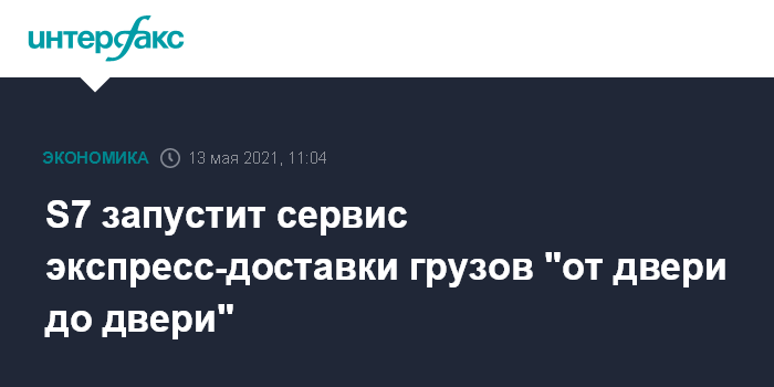 Москва. 13 мая. INTERFAX.RU - Группа S7 запускает сервис экспресс-доставки грузов по России "от двери до двери".
