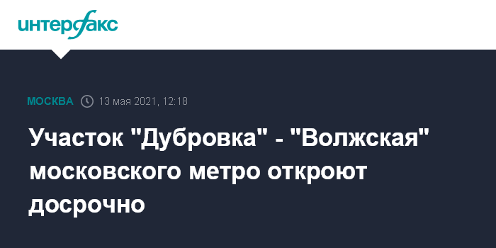 Участок "Дубровка" - "Волжская" московского метро откроют досрочно