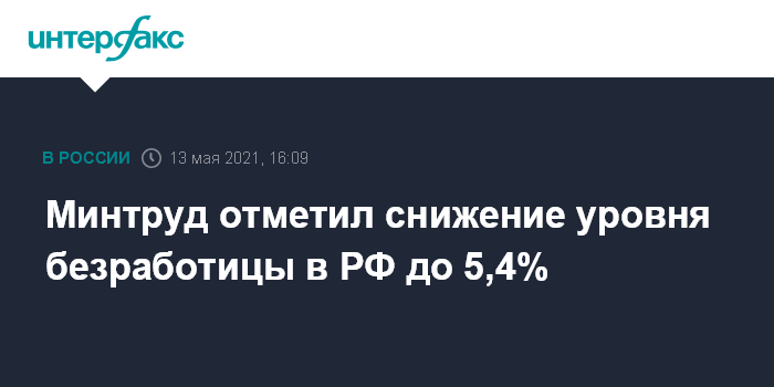 Минтруд отметил снижение уровня безработицы в РФ до 5,4%