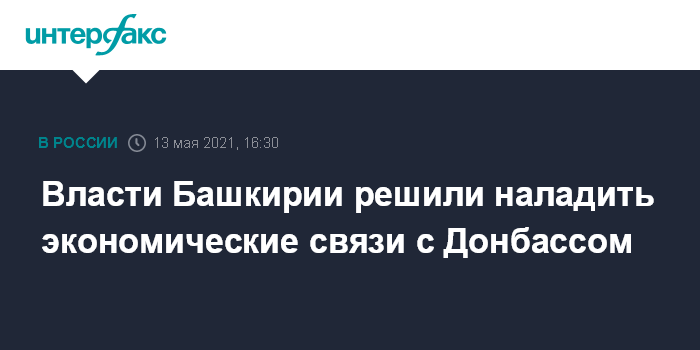 Москва. 13 мая. INTERFAX.RU - Глава Башкирии Радий Хабиров заявил, что республика планирует наладить внешнеэкономические связи с самопровозглашенными Луганской и Донецкой народными республиками.