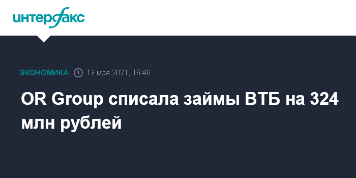 Москва. 13 мая. INTERFAX.RU - OR Group (ранее - группа компаний "Обувь России") сообщила, что списала задолженность по льготным кредитным линиям, предоставленным ВТБ в рамках госпрограммы поддержки предприятий, пострадавших от последствий коронавируса.