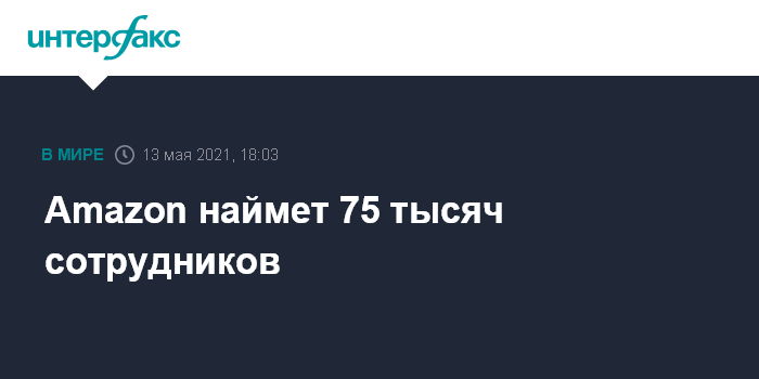 Москва. 13 мая. INTERFAX.RU - Американский интернет-ритейлер Amazon.com сообщил, что планирует нанять 75 тыс. сотрудников.