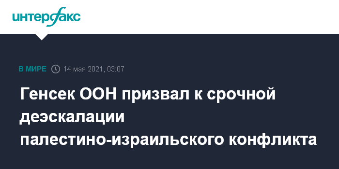 Москва. 14 мая. INTERFAX.RU - Генеральный секретарь ООН Антониу Гутерриш призвал немедленно прекратить военные действия между Израилем и сектором Газа.