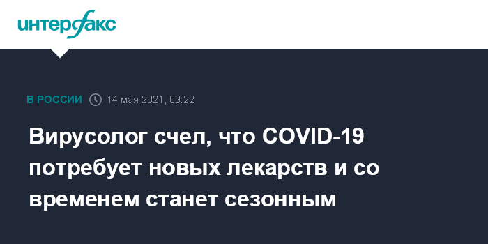 Вирусолог счел, что COVID-19 потребует новых лекарств и со временем станет сезонным