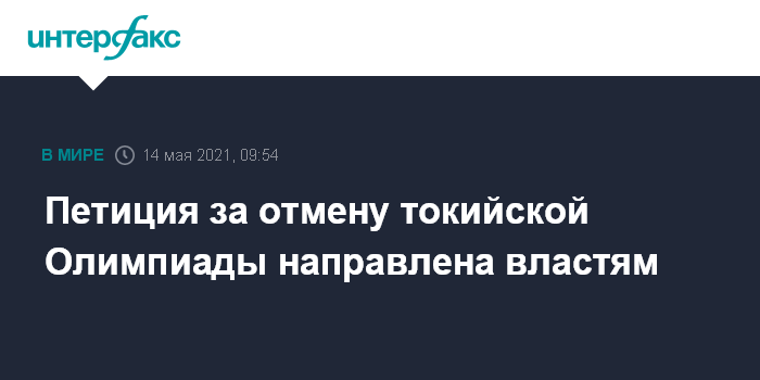 Москва. 14 мая. INTERFAX.RU - Петиция с требованием отменить из-за COVID-19 Олимпийские игры в Токио, собравшая свыше 351 тысяч голосов, в пятницу была передана губернатору Токио Юрико Коикэ, сообщили западные СМИ.