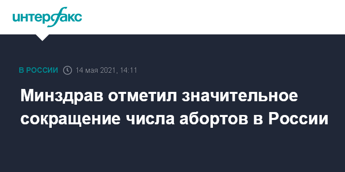 Москва. 14 мая. INTERFAX.RU - Количество абортов в России в 2020 году сократилось до 450 000, сообщил на общецерковном съезде по социальному служению замминистра здравоохранения Олег Салагай.