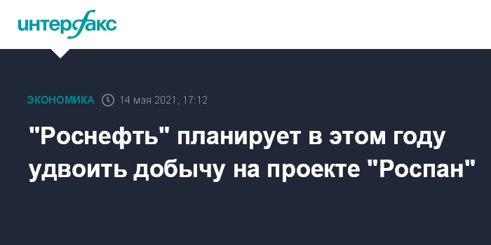 Москва. 14 мая. INTERFAX.RU - "Роснефть" рассчитывает в 2021 году более чем в 2 раза увеличить добычу на "Роспане" - до 14 млрд кубических метров газа, сообщил директор департамента планирования, управления эффективностью и развития газового бизнеса компании Олег Иванов в ходе телеконференции.