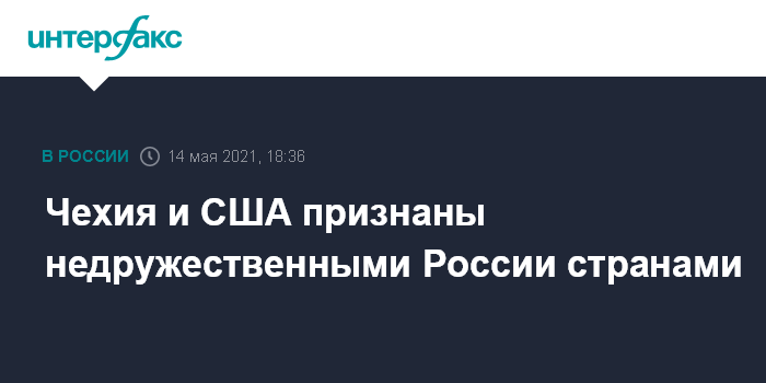 Чехия и США признаны недружественными России странами