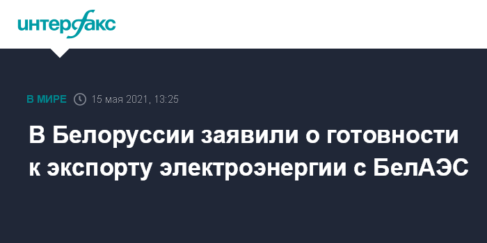 Москва. 15 мая. INTERFAX.RU - Белоруссия готова обеспечить поставки электроэнергии с БелАЭС на экспорт, заявил журналистам министр энергетики Виктор Каранкевич в субботу.