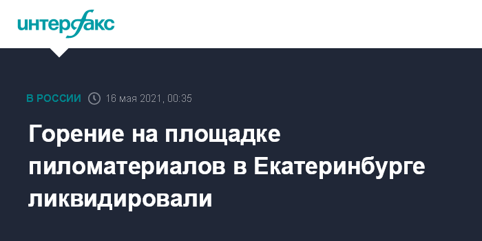 Москва. 16 мая. INTERFAX.RU - Спасатели ликвидировали открытое горение на площадке пиломатериалов в Екатеринбурге, сообщили "Интерфаксу" в пресс-службе главного управления МЧС России по Свердловской области.