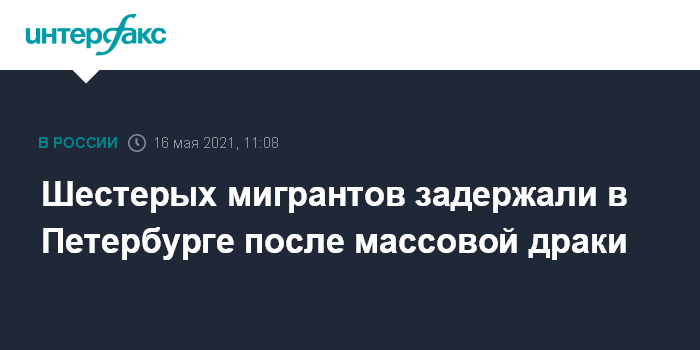 Москва. 16 мая. INTERFAX.RU - Уголовное дело возбуждено в Петербурге после массовой драки мигрантов в Приморском районе города, задержаны шестеро приезжих из Средней Азии, сообщает в воскресенье пресс-служба регионального главка МВД.