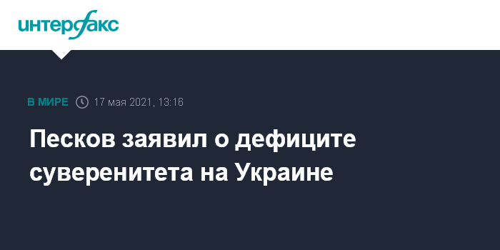 Москва. 17 мая. INTERFAX.RU - Дефицит суверенитета Украины восполняется теми, кто направляет ее "твердой рукой" в сторону ненависти к России, но Москва открыта для дружественного диалога и попыток нормализации отношений, заявил пресс-секретарь президента РФ Дмитрий Песков.