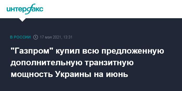 Москва. 17 мая. INTERFAX.RU - "Газпром" забронировал все предложенные дополнительные транзитные мощности Украины на июнь, следует из результатов месячного аукциона на Regional Booking Platform.