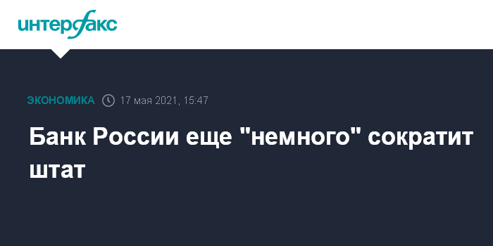 Москва. 17 мая. INTERFAX.RU - Банк России, который в 2020 году из-за пандемии приостановил оптимизацию численности персонала, возобновит процесс и еще "немного" сократит штат, сообщил в Госдуме зампред ЦБ Руслан Вестеровский.