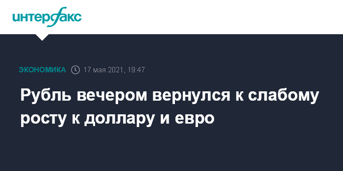 Как отмечают эксперты "Интерфакс-ЦЭА", рубль возобновил небольшое укрепление к доллару и евро на вечерних торгах на фоне роста цен на нефть. Торги на внутреннем валютном рынке проходят при сниженной активности игроков, которые ждут новой информации о подготовке саммита глав РФ и США Владимира Путина и Джозефа Байдена, а также результатов встречи министра иностранных дел РФ Сергея Лаврова и госсекретаря США Энтони Блинкена, которая состоится 20 мая на полях министерской сессии Арктического совета.