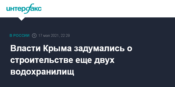 Москва. 17 мая. INTERFAX.RU - Два водохранилища могут быть построены для решения проблемы дефицита воды в Симферополе и Алуште, сообщил глава Крыма Сергей Аксенов.