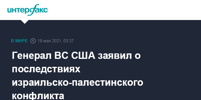 Генерал ВС США заявил о последствиях израильско-палестинского конфликта