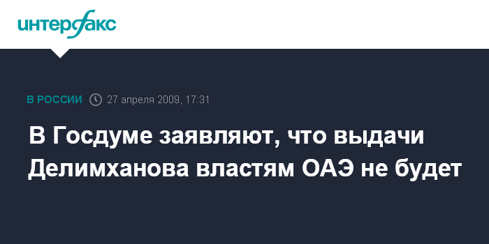 Парламентарий заявил, кроме того, что российская сторона вправе затребовать у Арабских Эмиратов материалы, свидетельствующие о причастности Делимханова к покушению в Дубае на героя России Сулима Ямадаева. "Поскольку речь идет о депутате Госдумы, нам не безразлично, на основании чего власти Эмиратов обвиняют его в преступлении и требуют выдачи. Хотелось бы узнать их аргументацию", - сказал Крашенинников.