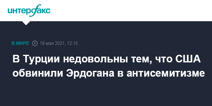 Москва. 19 мая. INTERFAX.RU - В Турции в среду отвергли обвинения Вашингтона в адрес президента страны Реджепа Тайипа Эрдогана в антисемитских заявлениях.