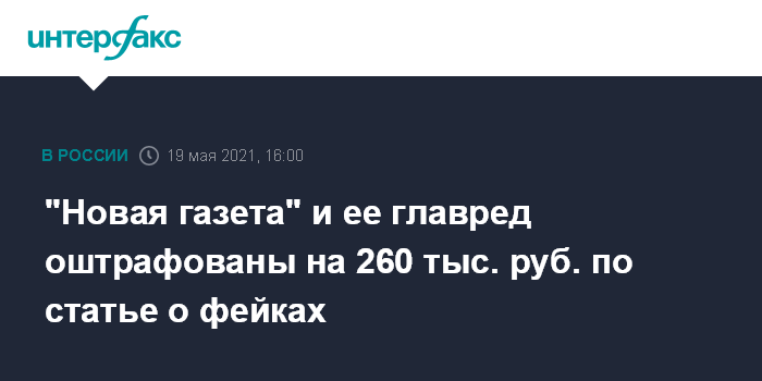 "Новая газета" и ее главред оштрафованы на 260 тыс. руб. по статье о фейках