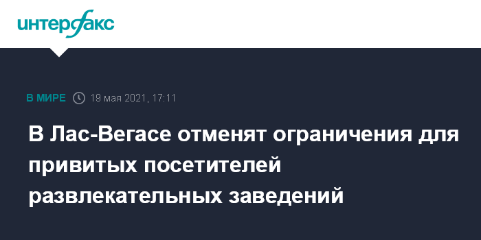 Законодатели округа Кларк штата Невада во вторник единогласно проголосовали за возвращение к допандемийному режиму работы. Они последовали рекомендациям Центров по контролю и профилактике заболеваний США (Centers for Disease Control and Prevention, CDC), отказавшись от планов увязывать показатели заполняемости залов с темпами вакцинации от коронавируса.