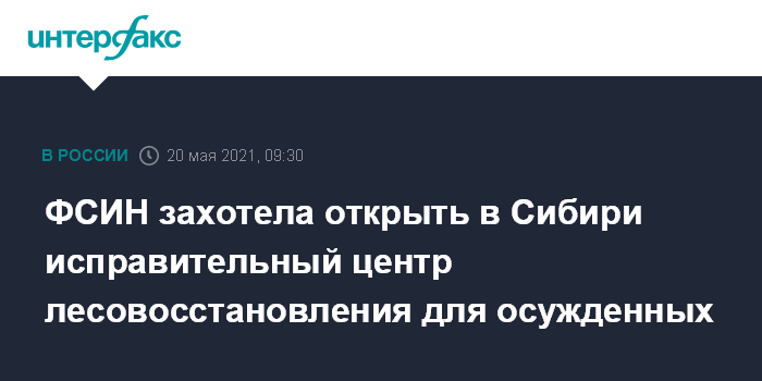 Москва. 20 мая. INTERFAX.RU - Федеральная служба исполнения наказаний (ФСИН) России хочет создать в Сибири исправительный центр для осужденных, где они могли бы выращивать саженцы для восстановления лесов, сообщил в четверг директор ФСИН Александр Калашников.
