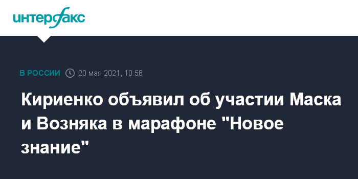Кириенко объявил об участии Маска и Возняка в марафоне "Новое знание"