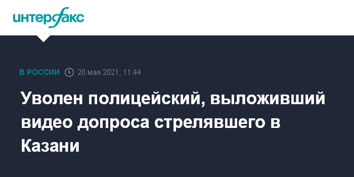 Москва. 20 мая. INTERFAX.RU - Сотрудник полиции, выложивший в интернет видео допроса стрелявшего в казанской школе Ильназа Галявиева, уволен, сообщили "Интерфаксу" в пресс-службе МВД по Татарстану в четверг.