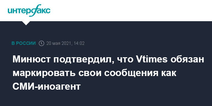 Минюст подтвердил, что Vtimes обязан маркировать свои сообщения как СМИ-иноагент
