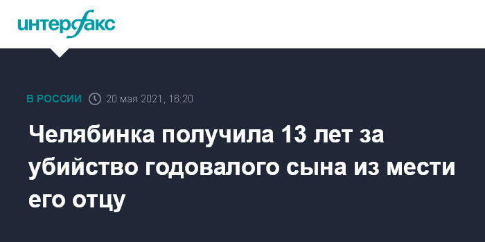 Москва. 20 мая. INTERFAX.RU - Челябинский областной суд приговорил к длительному сроку заключения 24-летнюю жительницу села Ларино Уйского района, которая зарезала своего ребенка из мести его отцу. Об этом сообщает пресс-служба областной прокуратуры в четверг.