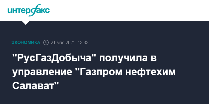 Москва. 21 мая. INTERFAX.RU - Единым исполнительным органом нефтеперерабатывающего комплекса "Газпром нефтехим Салават", который будет отвечать за его развитие, станет дочерняя компания "РусГазДобычи" "РГД переработка Салават". Соответствующий договор на управление подписали в пятницу "Газпром" и "РусГазДобыча", сообщает РГД.