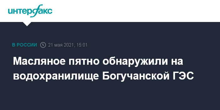 Москва. 21 мая. INTERFAX.RU - Масляное пятно обнаружено на водохранилище Богучанской ГЭС в 17 км от г. Кодинск, сообщает пресс-служба прокуратуры Красноярского края.