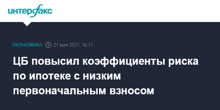 ЦБ повысил коэффициенты риска по ипотеке с низким первоначальным взносом