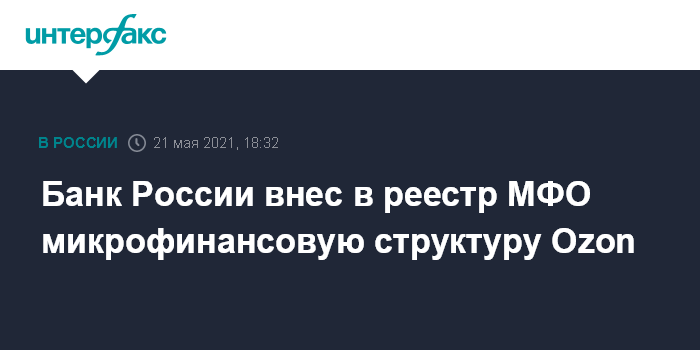 Банк России внес в реестр МФО микрофинансовую структуру Ozon