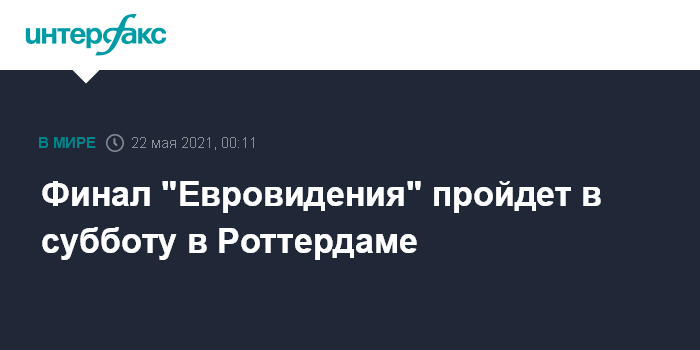 "Евровидение" в этом году проходит с 18-22 мая в Роттердаме. Нидерланды получили право приводить конкурс после победы своего исполнителя Дункана Лоуренса на "Евровидении" в 2019 году. Россию на конкурсе представляет певица Манижа, которая стала победительницей национального зрительского голосования во время специального шоу на Первом канале. В финале она выступит под номером пять.