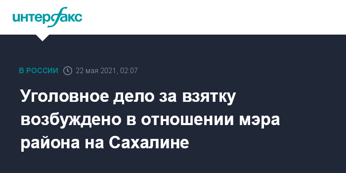 Москва. 22 мая. INTERFAX.RU - Уголовное дело возбуждено в отношении мэра Макаровского городского округа Сахалина, его подозревают в получении взятки, решается вопрос о мере пресечения, сообщает в субботу пресс-служба следственного управления СК РФ по Сахалинской области.