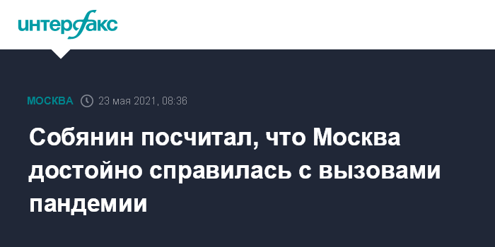 Москва. 23 мая. INTERFAX.RU - Российская столица достойно справилась с вызовом пандемии коронавируса COVID-19, сделав это лучше, чем некоторые города мира, считает мэр Москвы Сергей Собянин.