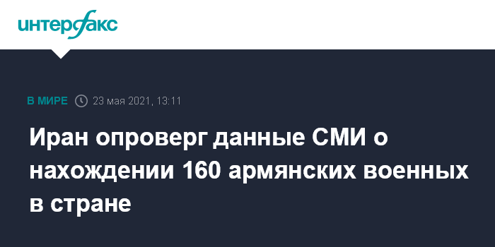 Москва. 23 мая. INTERFAX.RU - Посольство Ирана в Армении называет не соответствующими действительности сообщения СМИ о нахождении ста шестидесяти армянских военных на своей территории.