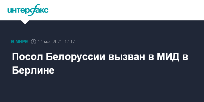 Москва. 24 мая. INTERFAX.RU - Глава МИД Германии Хайко Маас назвал абсурдными объяснения белорусского правительства насчет вынужденной посадки самолета Ryanair в Минске и сообщил, что посол Белоруссии в стране Денис Сидоренко вызван в МИД в Берлине.