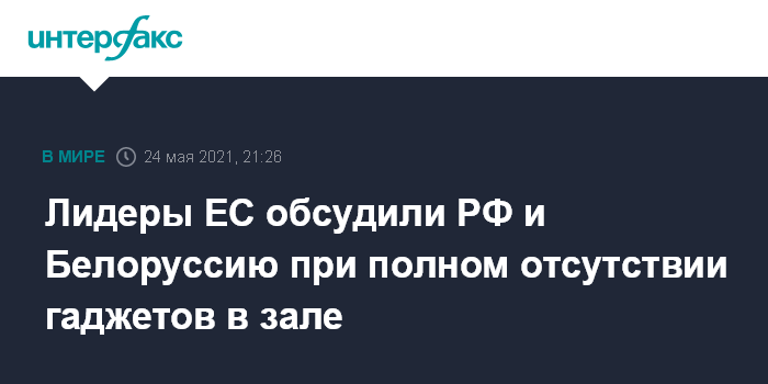 Москва. 24 мая. INTERFAX.RU - Председатель Европейского совета Шарль Мишель распорядился, чтобы часть повестки открывшегося в Брюсселе в понедельник саммита ЕС, посвященная Белоруссии и России, прошла при полном отсутствии в зале заседаний мобильных телефонов, планшетов и иных электронных устройств.