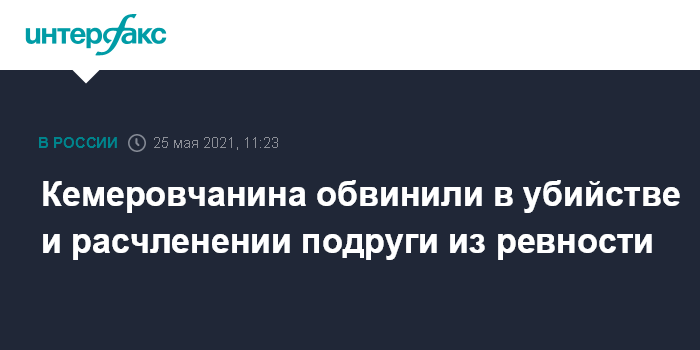 Москва. 25 мая. INTERFAX.RU - Жителю города Кемерово, который из ревности убил и расчленил свою подругу, предъявлено обвинение, сообщила во вторник пресс-служба регионального управления СКР.