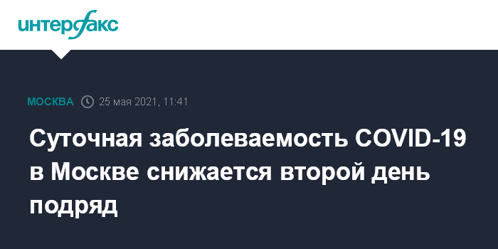 Суточная заболеваемость COVID-19 в Москве снижается второй день подряд