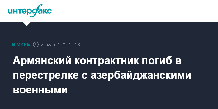Москва. 25 мая. INTERFAX.RU - Армянский военнослужащий погиб в результате перестрелки с азербайджанскими военными на территории Армении, сообщает Минобороны республики.