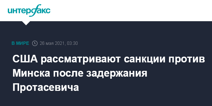 Ранее Байден назвал "прямым оскорблением международных норм" вынужденную посадку коммерческого рейса Ryanair и последующее задержание Протасевича в Белоруссии и сообщил, что поручил разработать меры привлечения к ответственности виновных.